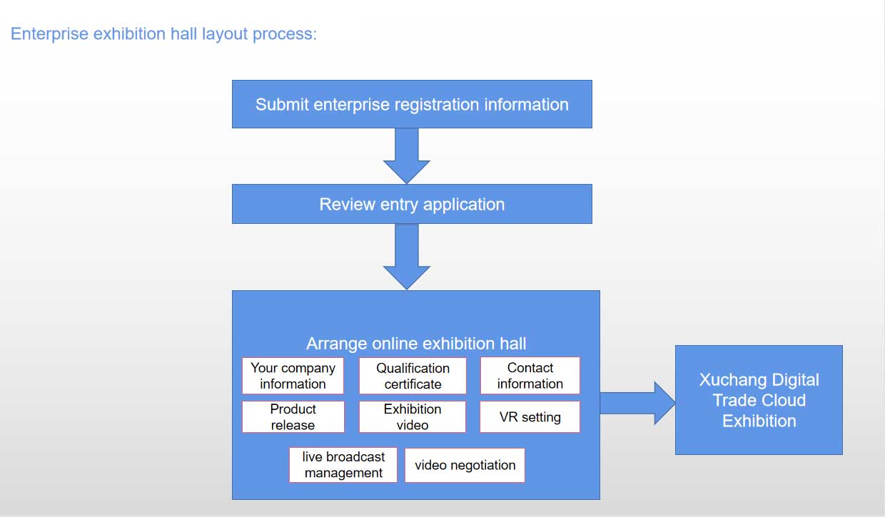 This training mainly includes four parts: (1)the advantages of the digital cloud exhibition (2)the introduction of the platform of the Xu Chang digital cloud exhibition (3)the layout of the enterprise exhibition hall (4)matters for attention of exhibitors