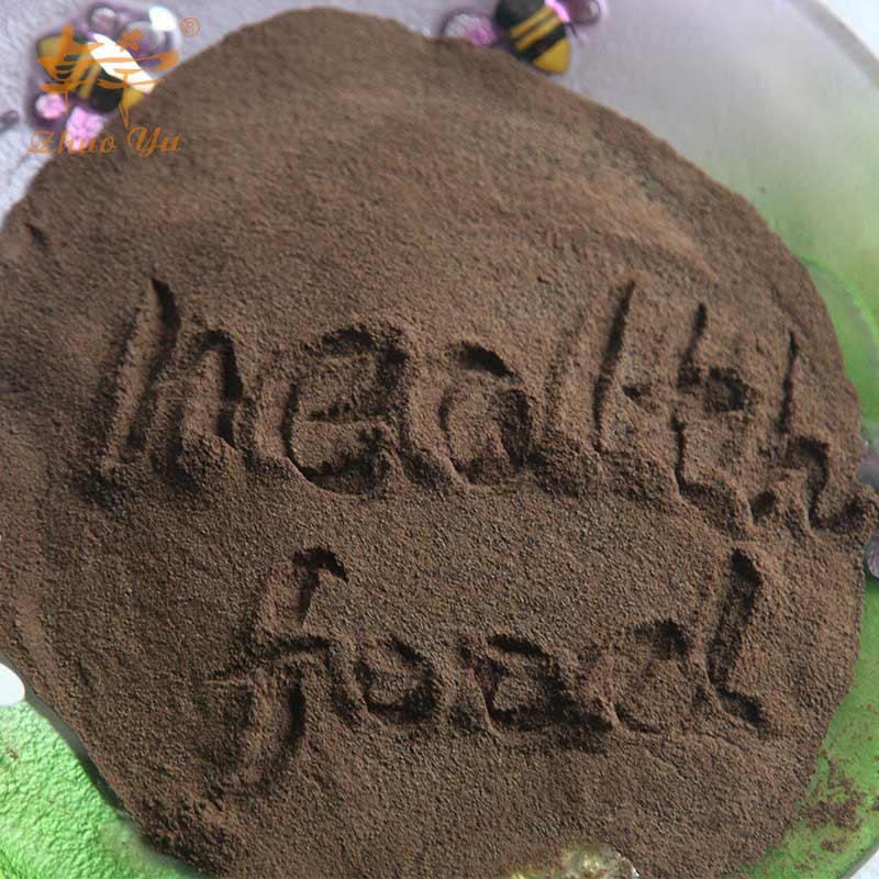 Propolis powder is produced by using modern technology to dry the wax free purified propolis flow extract with hot air. The dried propolis block is crushed, sieved, and then added with ultra-fine silica as an anticoagulant to propolis! The main ingredients are purified propolis and silica. The particle size of propolis powder and the content of purified propolis can be controlled from 30-80%, and different accessories can also be prepared according to customer requirements!