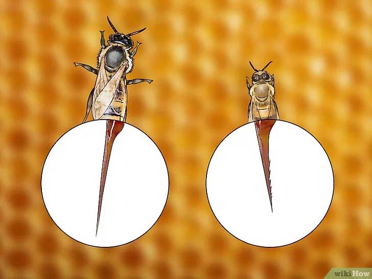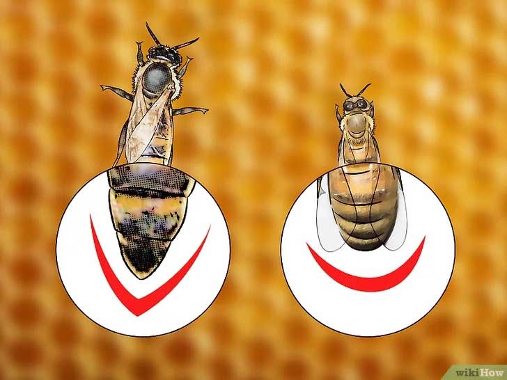 2. Check whether the abdomen is pointed. The abdomen of a bee refers to the back half of the body, near the tail spine. Bees have rounded abdomens, while queen bees have pointed abdomens. The queen bee can be easily identified by this method