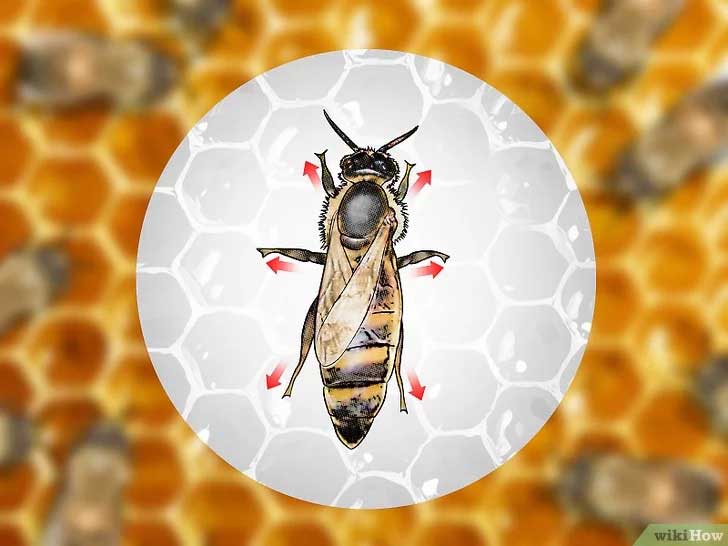 3. Look for bees that spread their legs. Worker and drone bees hide their legs under their bodies and generally only see a small portion of the legs if viewed from above. The queen bee's legs are extended out, so she can see better.