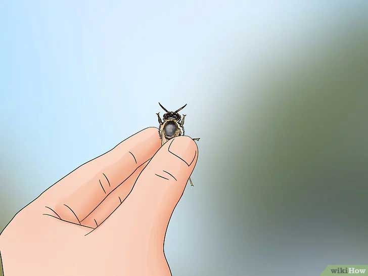 3. Gently grasp the queen bee's wings or thorax. Grab the queen bee's wings or thorax and lift it gently. Be very careful when grasping, if it starts to struggle, it may accidentally tear its wings or squeeze it.