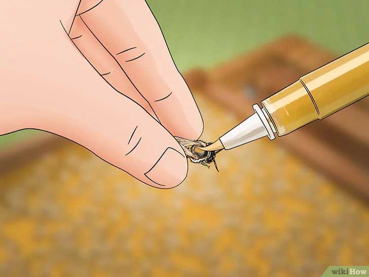 2. Prepare the paint in advance. If you hold bees with your hands for too long, they may struggle and even get injured, so be sure to have a marker ready before picking up a bee. Hold a paintbrush or paint dipped in paint in your other hand or on a small table next to the hive.