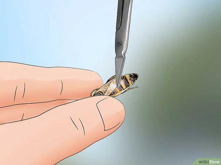 6. You can trim the queen bee's wing tips, but you don't have to. Some beekeepers prefer to mark by trimming the tips of their wings rather than marking them with coloring. If you choose this method, you should gently grab the queen bee, and then use a special tool to trim the tip quarter of the wing.