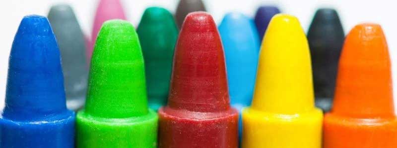 Combine equal parts beeswax and soap shavings and melt in a double boiler. Once melted, pour into molds, add a few drops of food coloring to each mold to make different shades, and stir until combined. Let the crayons harden (this will take a few hours) and they're ready to use.