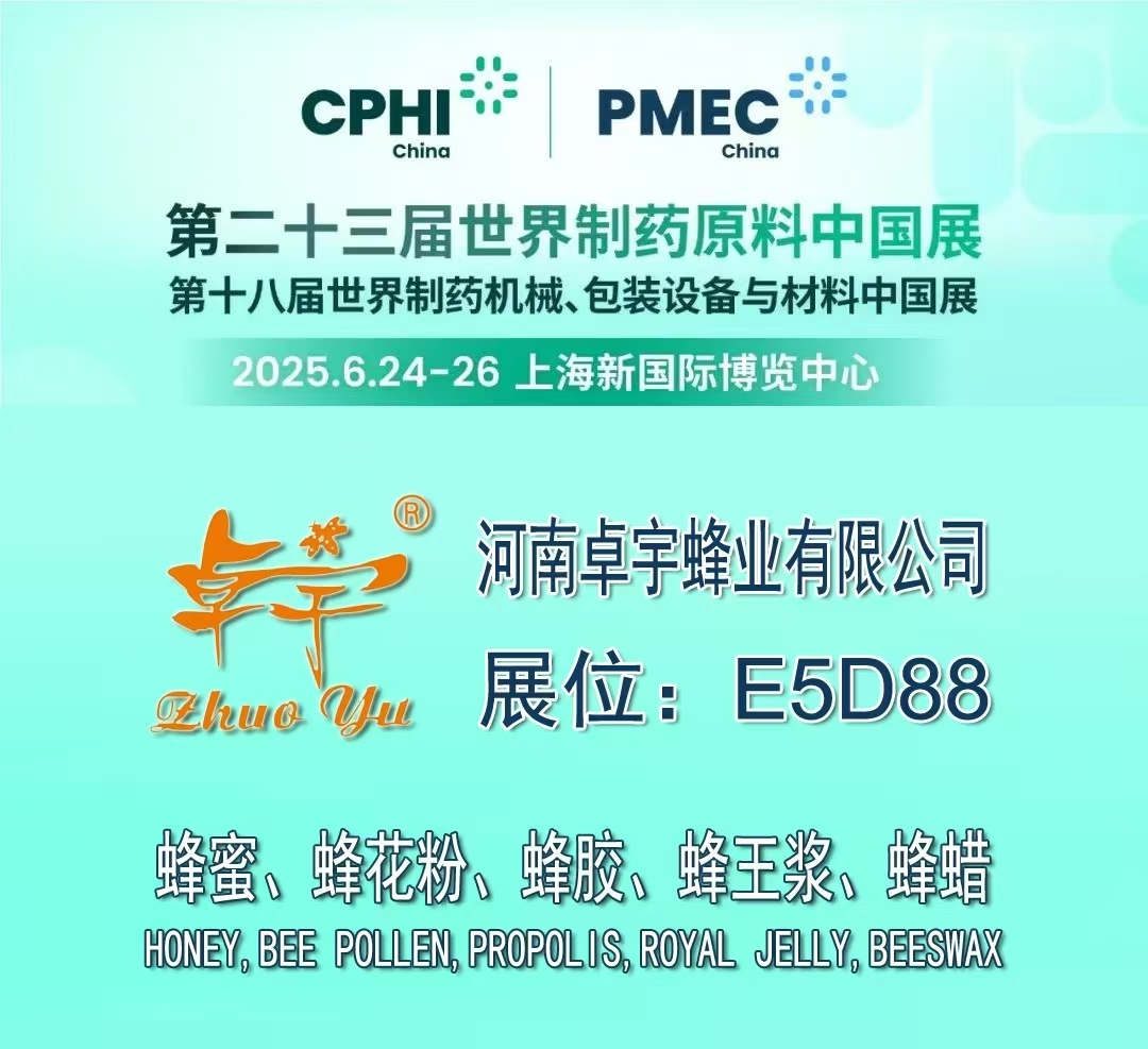 The buzz is building at Asia’s largest pharma gathering! We’re thrilled to invite you to visit Henan Zhuoyu Garaden Bee Products Co., Ltd. at CPHI & PMEC China 2025 (June 24-26, Shanghai New International Expo Centre). As a leading innovator in bee-derived health solutions, we’re showcasing our full range of HACCP-certified, traceable bee products perfectly aligned with your nutraceutical and pharmaceutical needs.